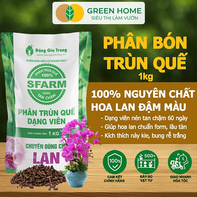 Phân Trùn Quế Viên Nén Greenhome, Sfarm, Bao 1kg, Dinh Dưỡng Hữu Cơ, Không Mùi, Tốt Cho Lan, Bonsai, Rau, Cây Ăn Trái
