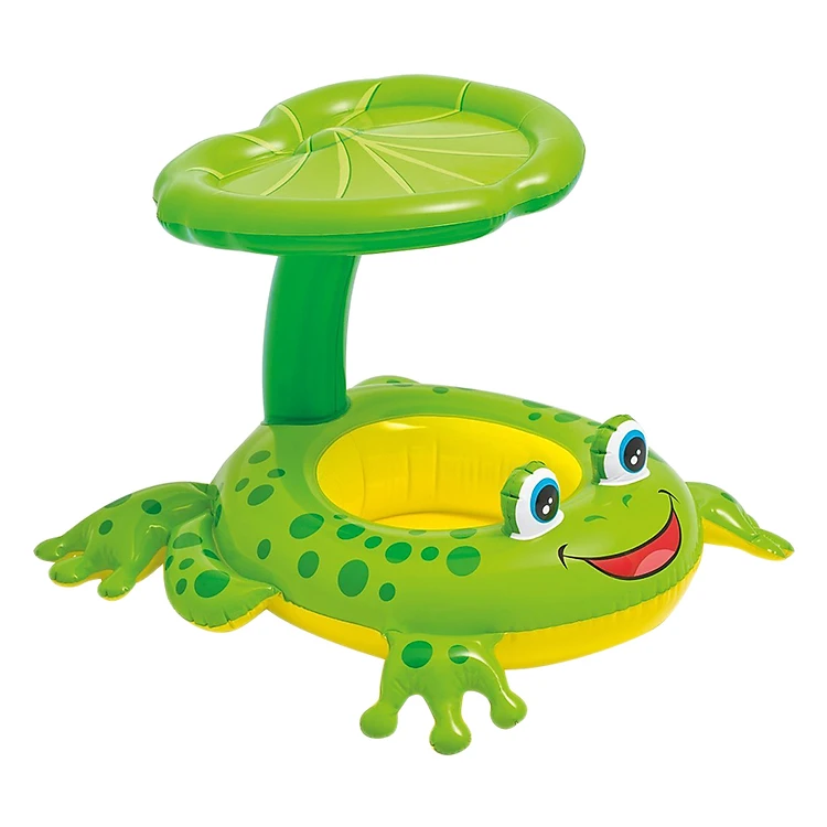 - Trên mặt phao có in hình chú ếch xanh cực kỳ đáng yêu với mái che hình lá sen xanh mướt không những giúp bé che nắng mà còn giúp bé trở nên nổi bật, xinh xắn và tự tin hơn khi đi bơi.