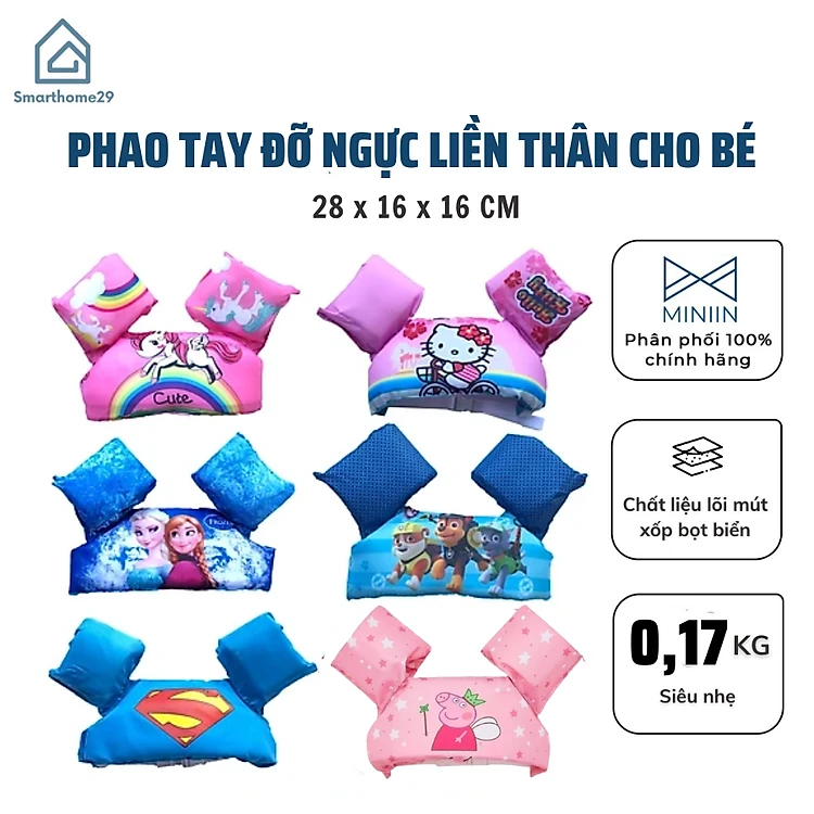 Phao tập bơi liền thân cho bé 2-10 tuổi, Áo phao tập bơi trẻ em, Phao tay đỡ ngực bé trai bé gái - Chính hãng MINIIN (Giao họa tiết, mẫu ngẫu nhiên)