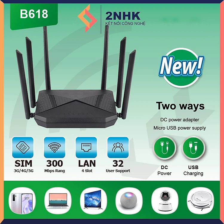 Phát wifi từ sim 4G B618 tích hợp 6 ăngten, bộ phát wifi 4G LTE có 4 cổng WAN/LAN, 6 ăngten Siêu Khỏe - hàng chính hãng