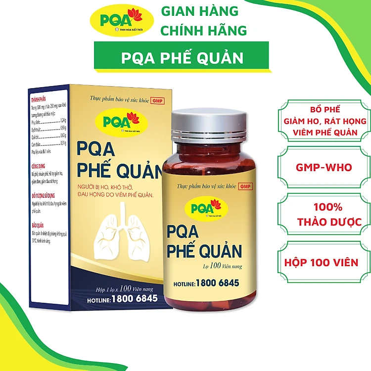 Phế Quản PQA Thành Phần Từ Thiên Nhiên Hỗ Trợ Bổ Phế, Giảm Ho, Đờm, Đau Rát Họng Hộp 30 Viên