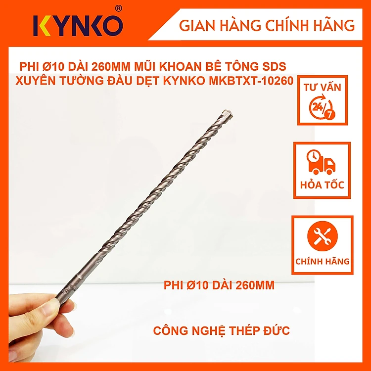 PHI Ø 10 DÀI 260MM MŨI KHOAN BÊ TÔNG SDS XUYÊN TƯỜNG ĐẦU DẸT KYNKO MKBTXT- 10260