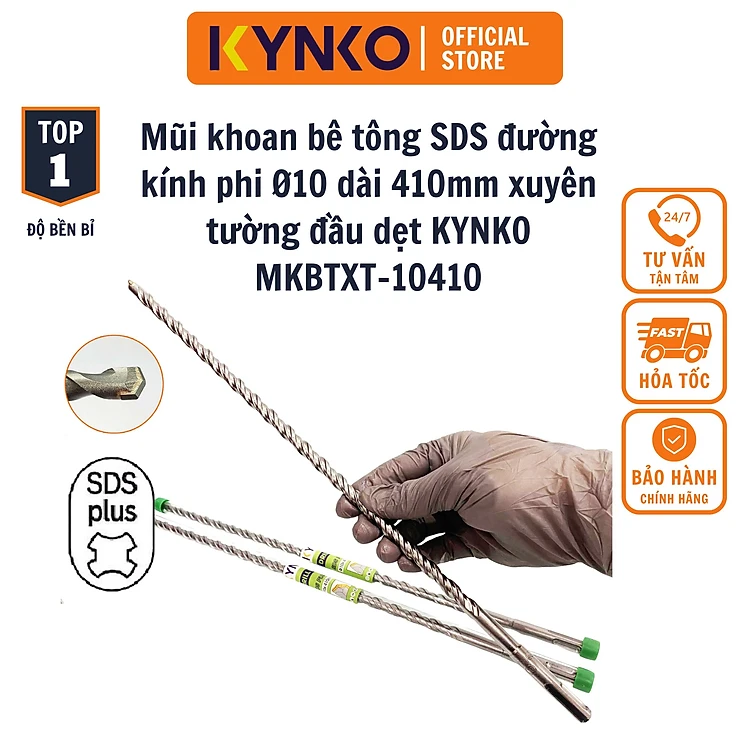 Phi Ø 10 dài 410MM mũi khoan bê tông SDS xuyên tường đầu dẹt KYNKO MKBTXT- 10410