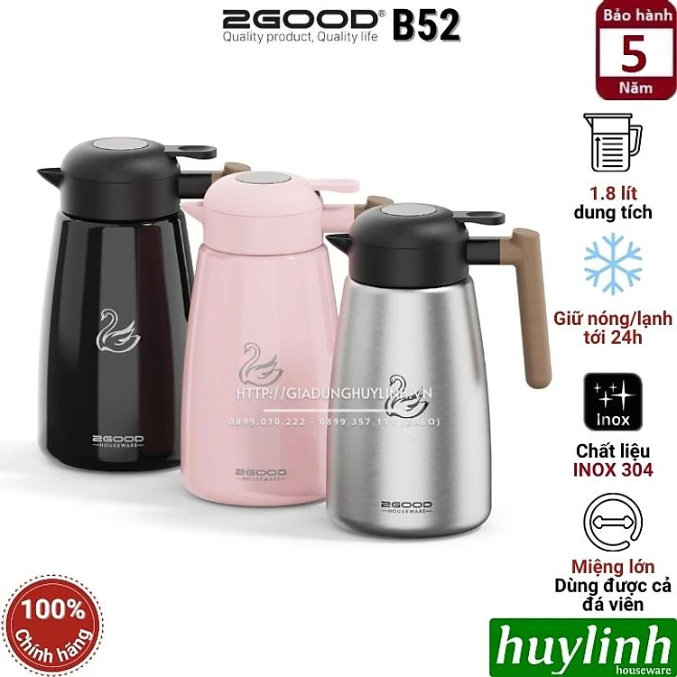 Phích - Bình thuỷ giữ nhiệt nóng lạnh 2Good B52 - Dung tích 1.8 lít - Đổi mới 5 năm