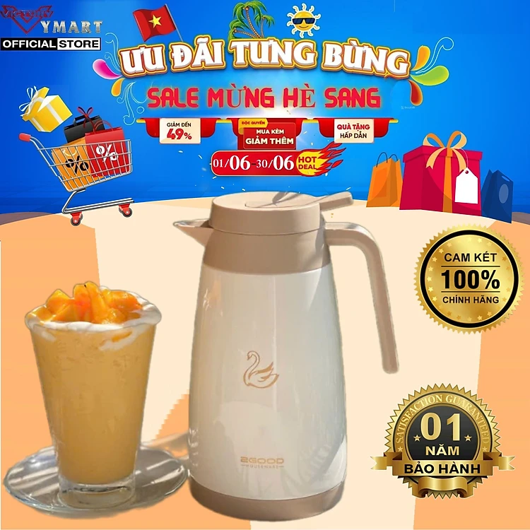 Phích Giữ Nhiệt, Bình Pha Trà 1L 2GOOD B11 - Chất Liệu inox, Giữ Nhiệt 24h - Hàng Chính Hãng