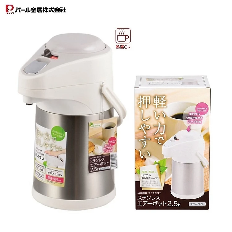 Phích giữ nhiệt Pearl Metal Air Pot 2.5L - Trắng - Hàng Nội Địa Nhật Bản nhập khẩu