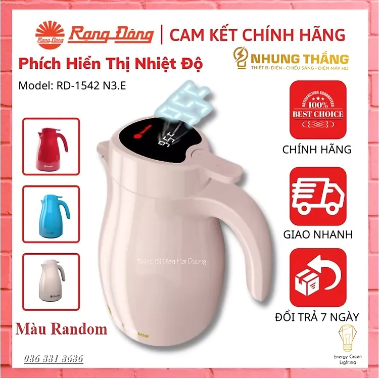 Phích Giữ Nhiệt Rạng Đông 1542N3.E - Dung Tích 1.5L - Hiển Thị Nhiệt Độ Thông Minh - Màu Random- Có Video