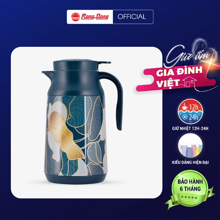 Phích hiển thị nhiệt độ Rạng Đông dung tích 1,3 lít model RD-1300TS1.E, nắp có cảm biến hiển thị nhiệt độ nước trong phích, hoa văn tinh tế, hiện đại, thời trang