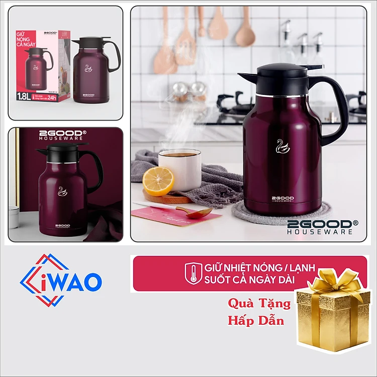 Phích Pha Trà, Bình Giữ Nhiệt, Bình Ủ 2GOOD B16 (1.8L) Hàng Chính Hãng 2GOOD Giữ Nhiệt Nóng Lạnh Suốt 24h