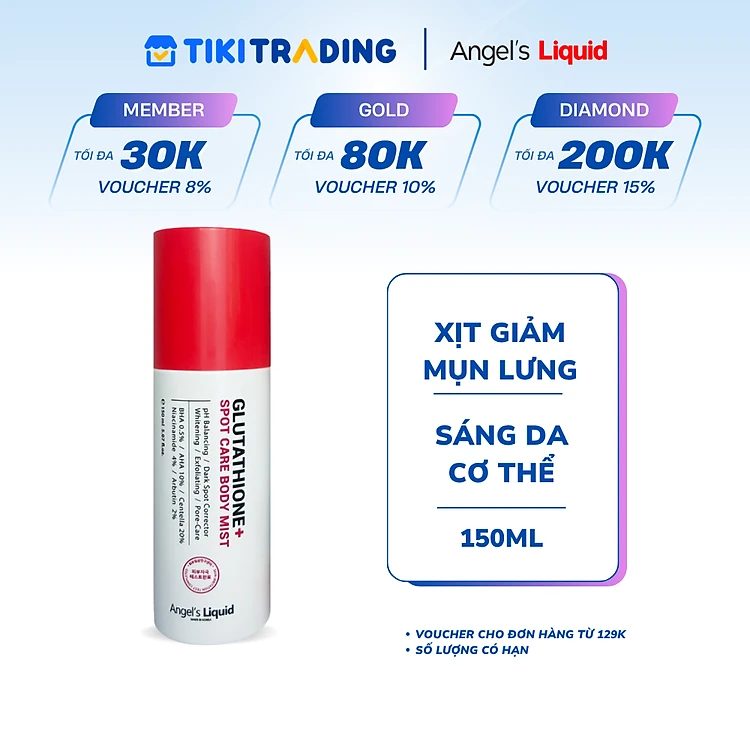 [PHIÊN BẢN NÂNG CẤP] Xịt Giảm Mụn Lưng Sáng Da Cơ Thể Angel's Liquid Glutathione+ Spot Care Body Mist 150ml