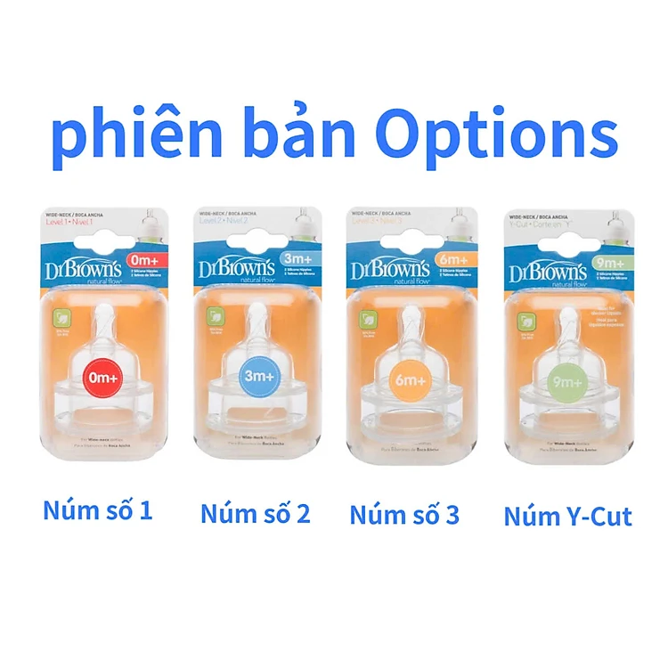 [ Phiên bản Options ] Set 2 núm ty thay thế bình sữa Dr.Brown's cổ rộng, phiên bản Options