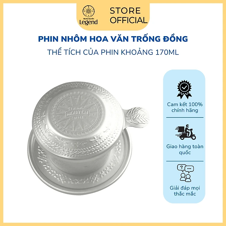 Phin Nhôm Trung Nguyên Legend - Hoa Văn Trống Đồng In Nổi - Màu Bạc - 170ml
