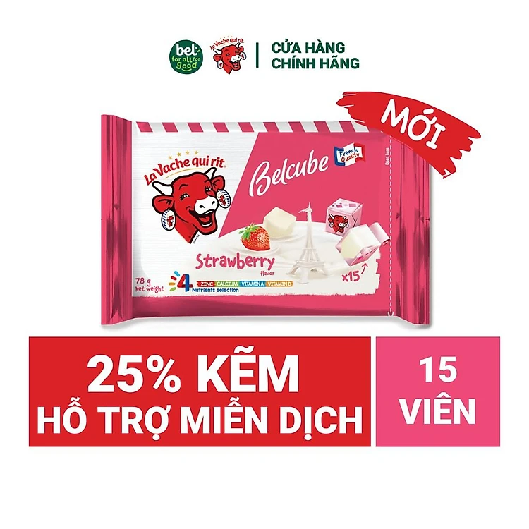 [Chỉ Giao HCM] Phô Mai Vuông Belcube (15 viên) Vị Dâu - Hỗ trợ hệ miễn dịch (La Vache qui rit)