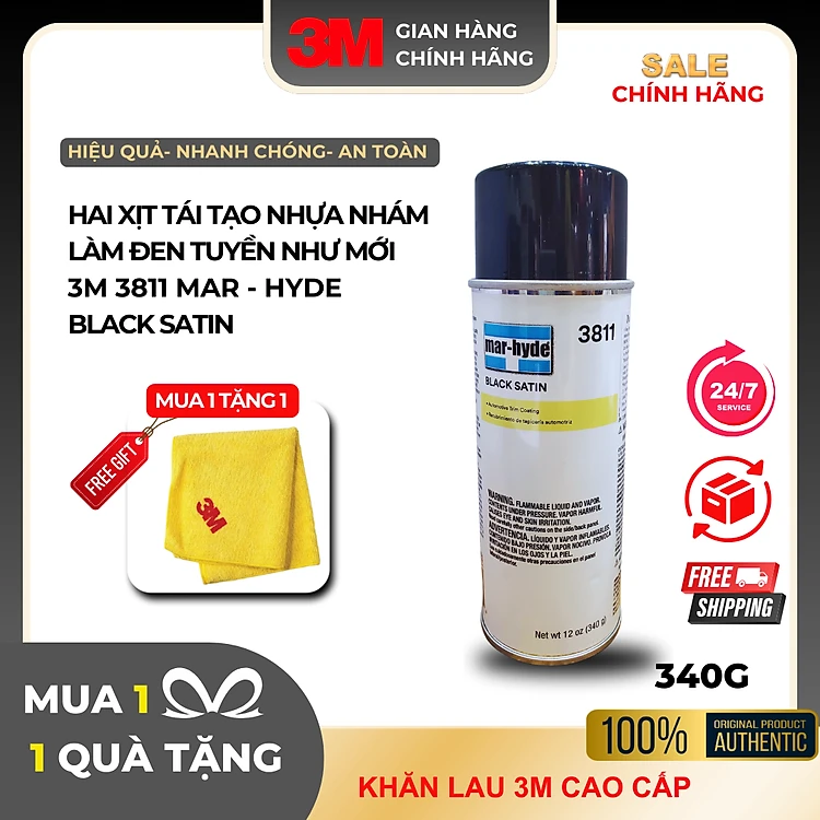 Phục hồi làm mới nhựa, kim loại màu đen 3M 3811 Mar-Hyde Black Satin dạng bình xịt - 340g