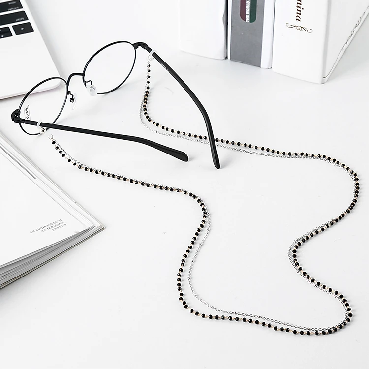 Phụ kiện kính chuỗi dây đeo cổ 2 lớp hạt đen retro thời trang dây đeo khẩu trang quai mũ phụ kiện quần áo