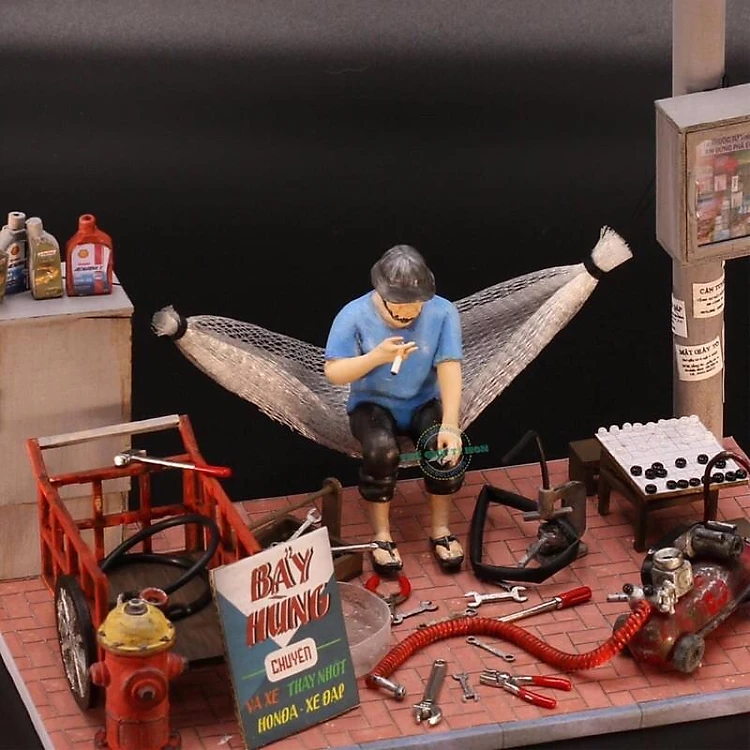 PHỤ KIỆN MÔ HÌNH NHÀ GỖ DIY - THẾ GIỚI TÍ HON - TƯỢNG ÔNG GIÀ NGỒI HÚT THUỐC - GHT