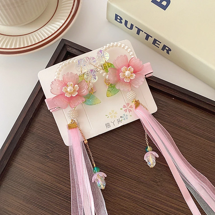 Phụ kiện tóc kẹp tóc cho bé gái phối đô cổ trang đầm tết noel giáng sinh năm mới đẹp tua rua trung hoa