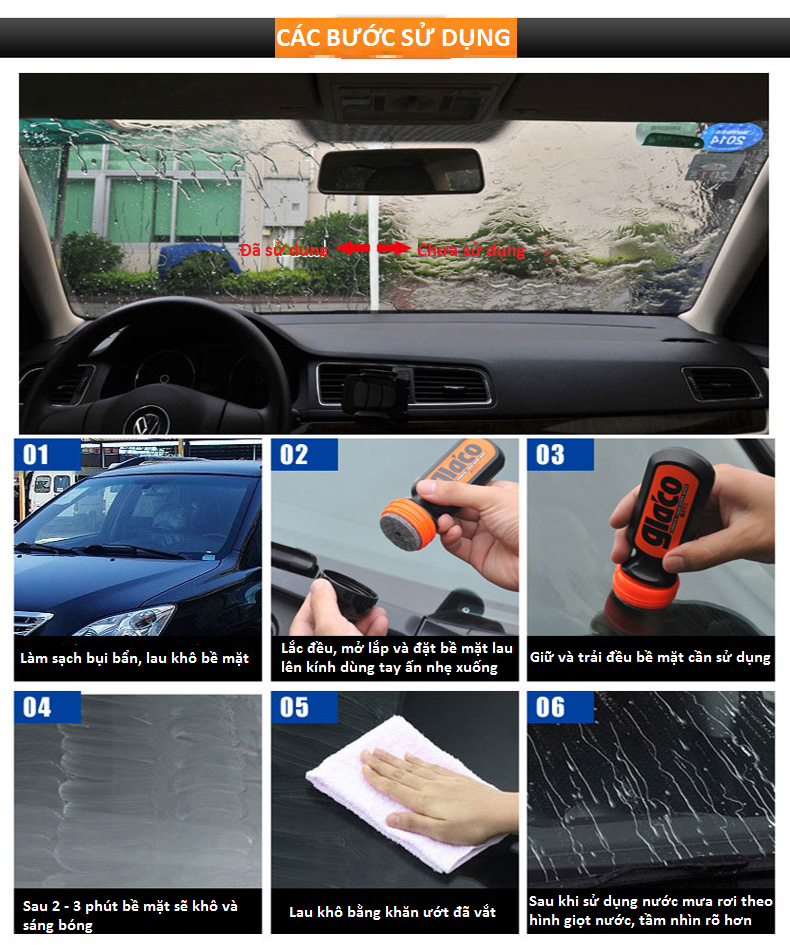 - Bảo vệ kính xe chống đọng nước, bám bẩn, trầy xước.