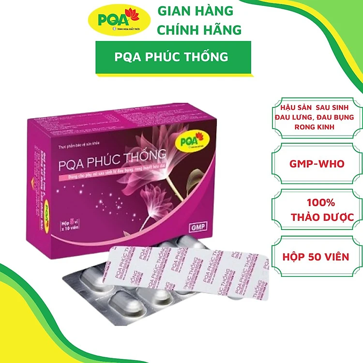 Phúc Thống PQA Giúp Bổ Huyết, Hỗ Trợ Điều Hòa Kinh Nguyệt, Các Triệu Chứng Đau Bụng Kinh Hộp 50 Viên
