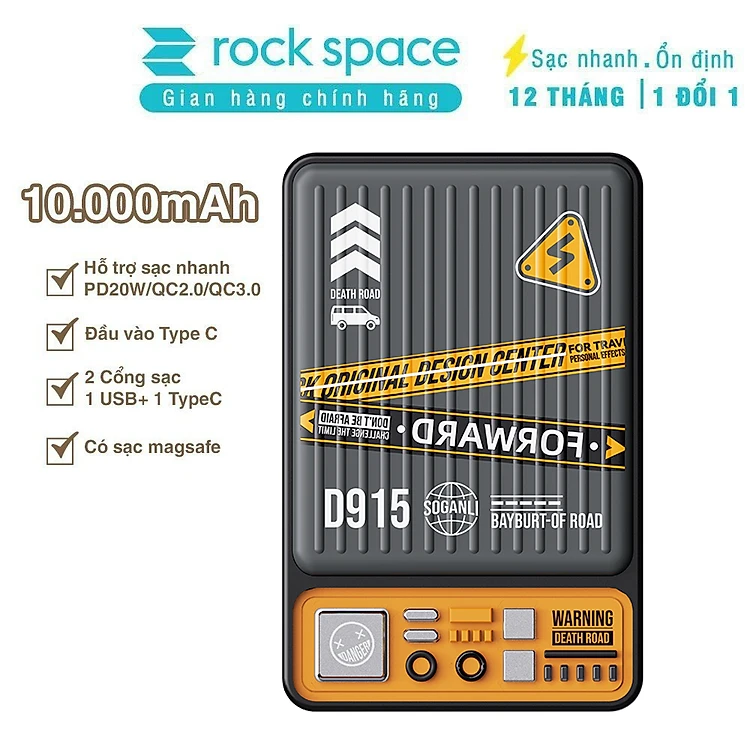 Pin dự phòng sạc nhanh PD 20W không dây từ tính Rockspace P90 10000mAh - Hàng chính hãng bảo hành 12 tháng
