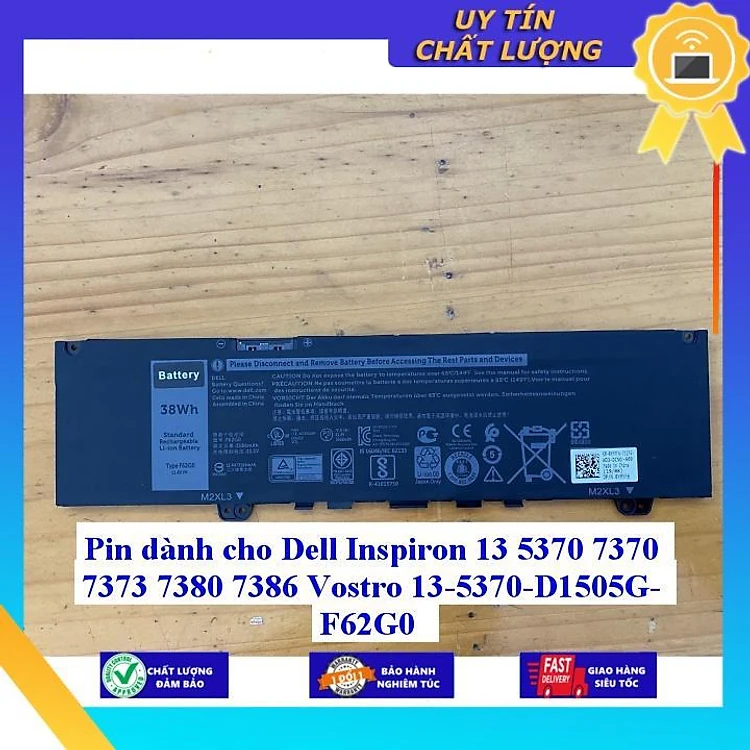 Pin dùng cho Dell Inspiron 13 5370 7370 7373 7380 7386 Vostro 13-5370 D1505G F62G0 - Hàng Nhập Khẩu New Seal