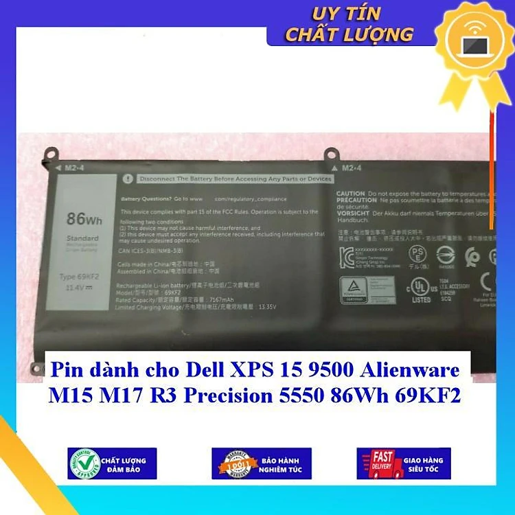 Pin dùng cho laptop Dell XPS 15 9500 Alienware M15 M17 R3 Precision 5550 86Wh 69KF2 - Hàng Nhập Khẩu New Seal