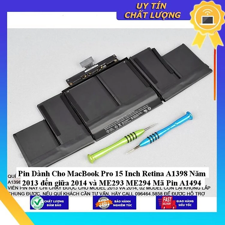 Pin dùng cho MacBook Pro 15 Inch Retina A1398 Năm 2013 đến giữa 2014 và ME293 ME294 Mã Pin A1494 - Hàng Nhập Khẩu New Seal