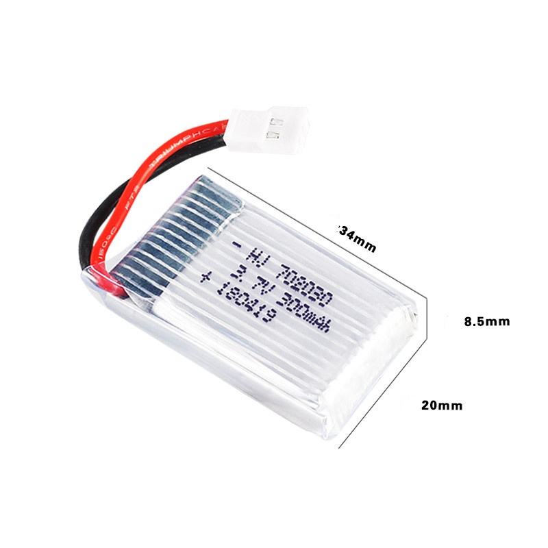 Pin flycam lithium 3.7V dung lượng 300mAh. Đầu JACK chuẩn gắn là PH2.0