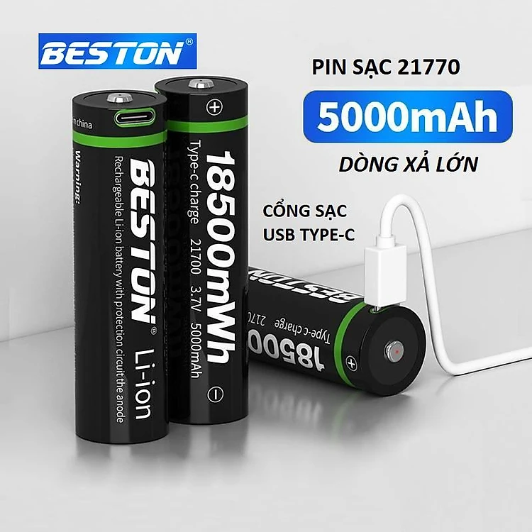Pin sạc 21770 18500mWh BESTON dòng xả lớn dùng cho đèn pin led công suất cao, pin dự phòng, đèn pin, xe điện