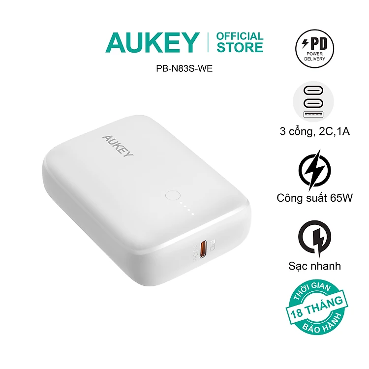 Pin sạc dự phòng Aukey PB-N83S 20W PD 10.000mAh, hàng chính hãng