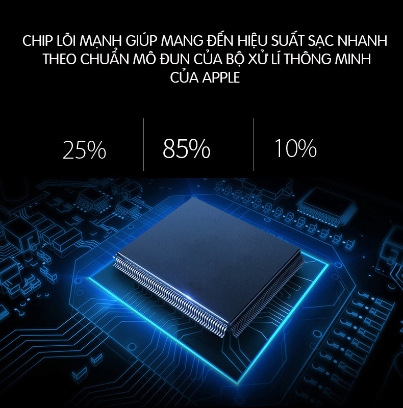 Tích hợp lõi chip cực mạnh có khả năng sạc hai chiều với đầu vào, ra ổn định nhờ vậy giúp bạn có thể sạc cùng một lúc vừa điện thoại đi động, máy tính bảng như iPhone, iPad và Apple Watch.