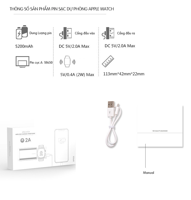 - Loại: Pin sạc dự phòng cho Apple Watch