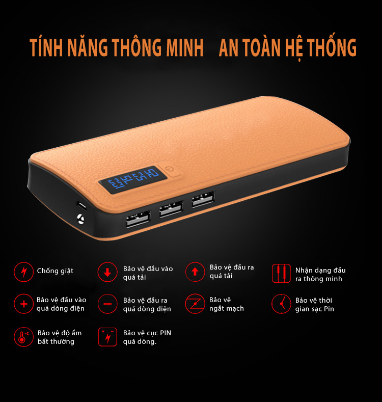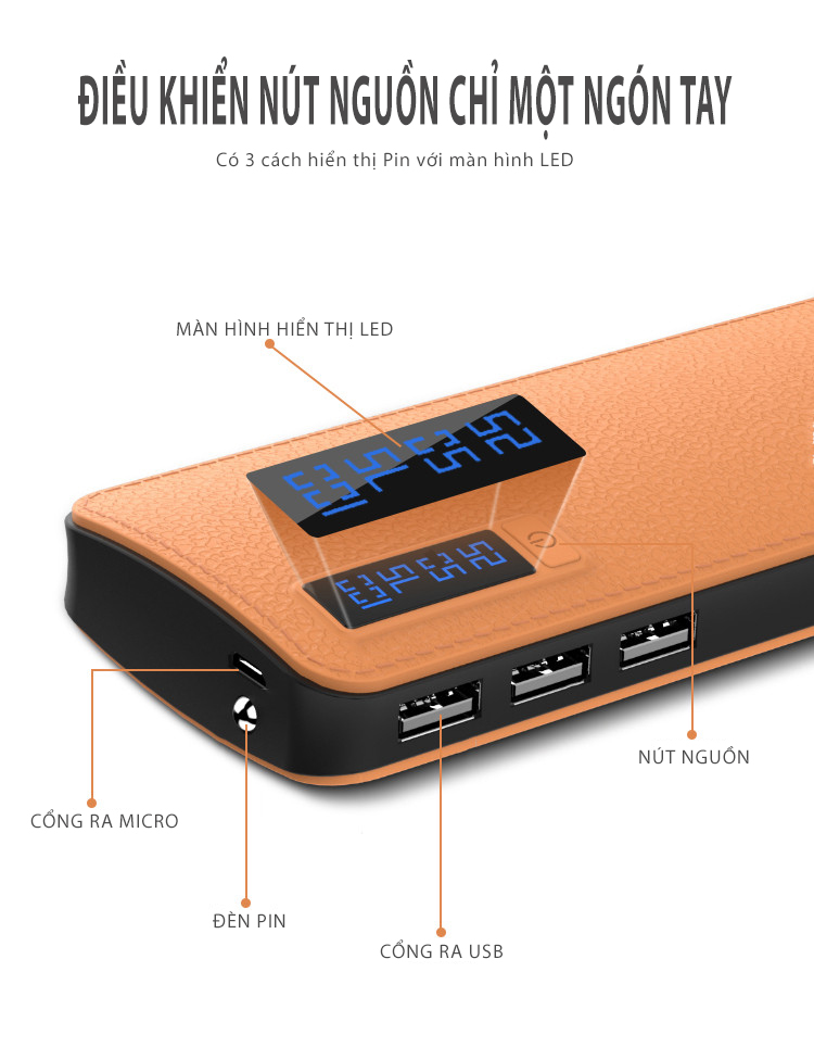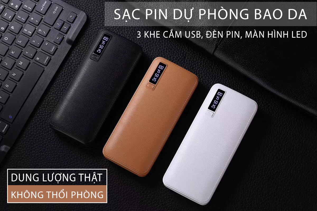 Pin Sạc Dự Phòng Da 10000 mAh 3 cổng USB