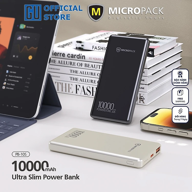 Pin Sạc Dự Phòng MicroPack POWER STORE PB-10S Siêu Mỏng 11.2mm Chuẩn PD Công Suất Tối Đa 22.5W Hàng Chính Hãng