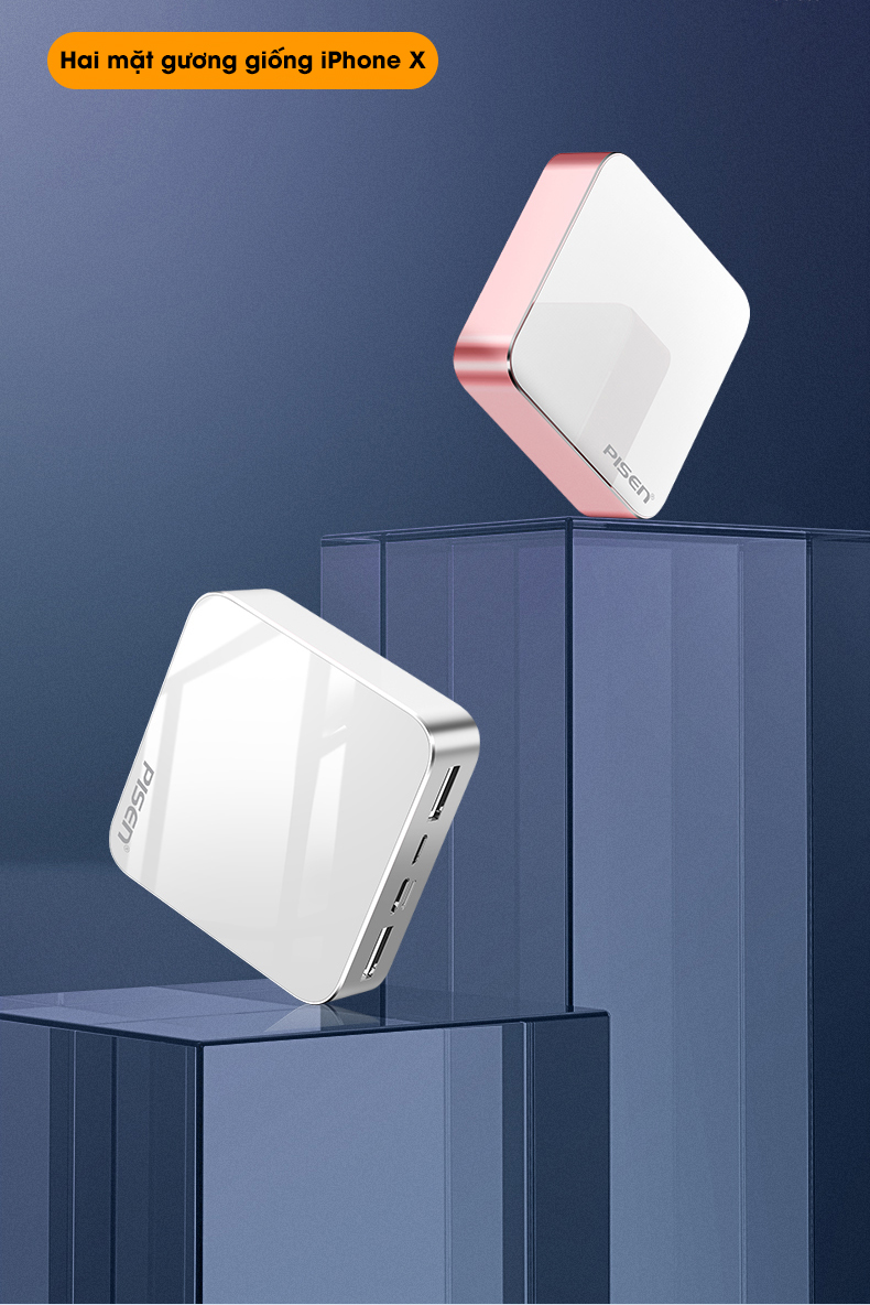 Pin Sạc Dự Phòng Mini Mirror Pisen 10000mAh (Hợp kim Mac + 2 Mặt Kính, 2x USB Smart, Led) - Hàng Chính Hãng