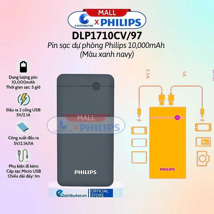 Pin Sạc Dự Phòng Philips 10,000mAh vỏ Kim Loại - 20,000mAh - Hàng Chính Hãng - Bảo Hành 12 Tháng