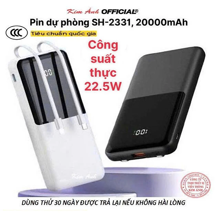 Pin sạc dự phòng SH-2331, công suất 22.5W dung lượng 20000mAh sạc nhanh hai chiều, có chứng nhận 3C tiêu chuẩn quốc gia, hàng chính hãng