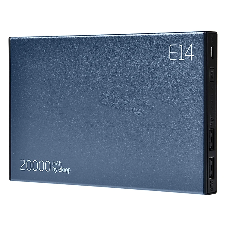 Pin Sạc Dự Phòng Tích Điện Eloop E14 màu xanh với dung lượng tích trữ lên đến 20.000 mAh, là một trong số những pin đa năng dùng công nghệ pin Li-Po có dung lượng khủng nhất hiện nay trên thị trường. Pin sạc dự phòng Li-Po 20.000 mAh có khả năng nạp đầy hơn 10 lần cho iPhone và khoảng 2-3 lần cho 1 chiếc iPad Air 2.