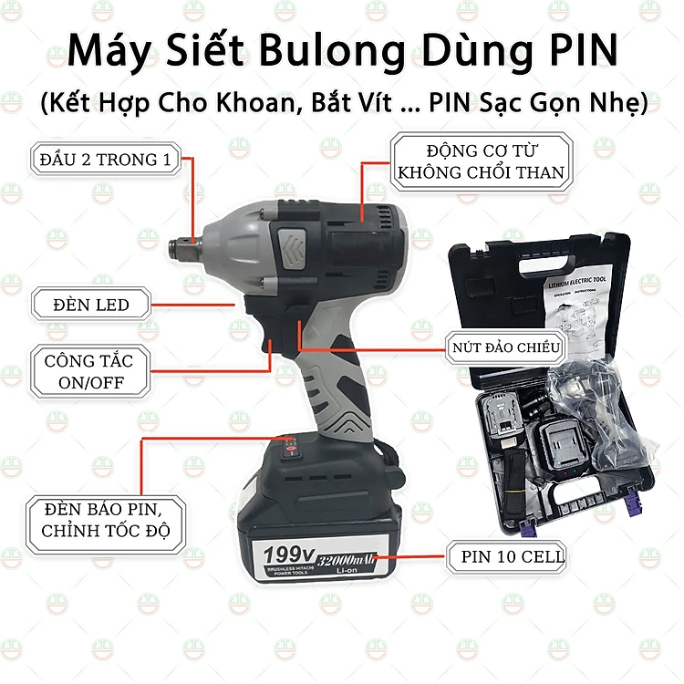[PIN Sạc] Máy Siết Vặn Bulong KhoNCC Hàng Chính Hiệu - Bắn Vít Không Chổi Than - KNK-MSBL