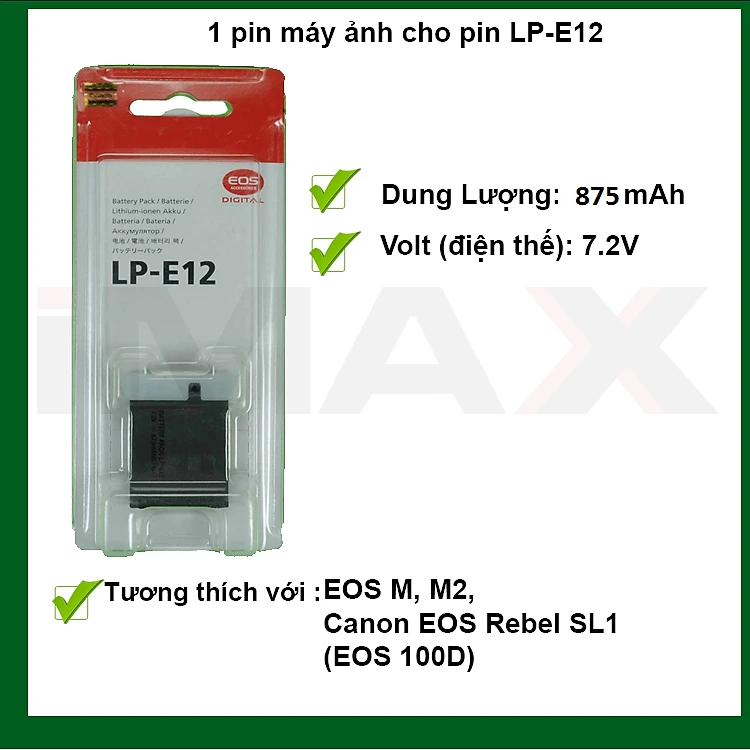 - Pin Canon LP-E12 phù hợp với Canon EOS M, M2, Canon EOS Rebel SL1(EOS 100D)