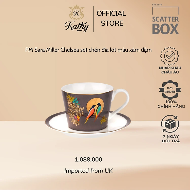 Portmeirion Sara Miller Chelsea set chén đĩa lót màu xám đậm Nhập khẩu Anh Quốc