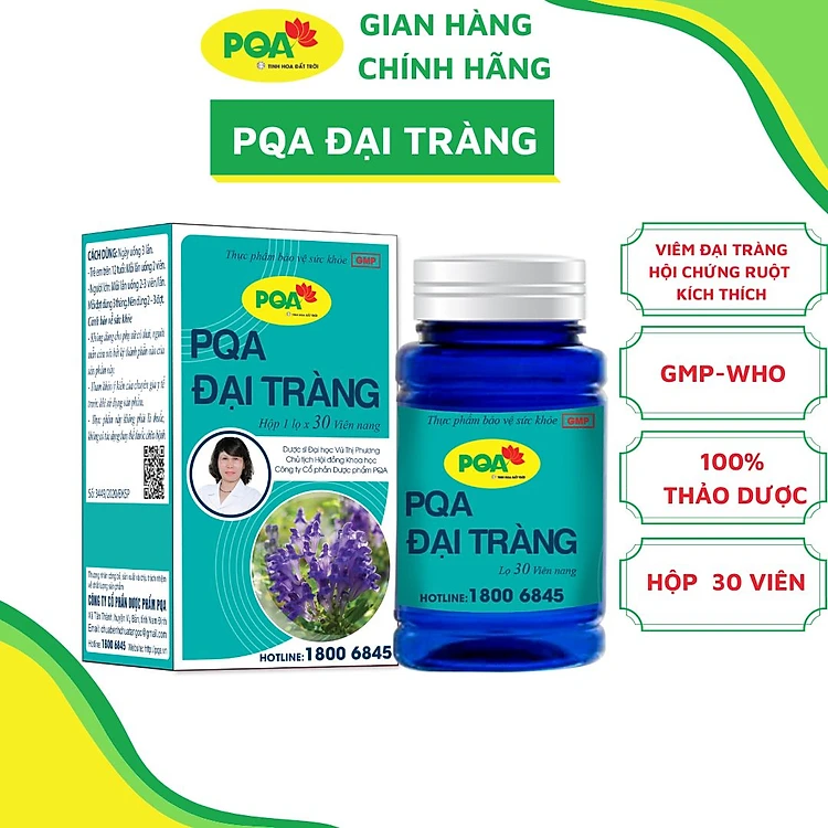 PQA Đại Tràng lọ 30 viên nang là dược phẩm thảo dược dùng cho người bị viêm đại tràng hỗ trợ ngăn ngừa các triệu chứng của viêm đại tràng cấp và mạn tính, rối loạn tiêu hóa.