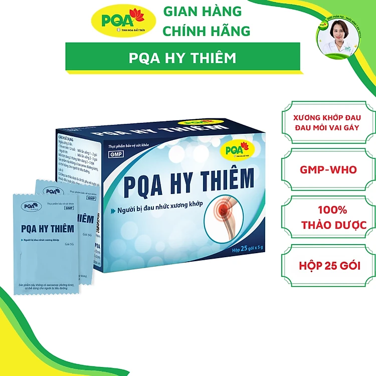 PQA Hy Thiêm là dược phẩm thảo dược giúp bổ huyết,mạnh gân cốt, hỗ trợ đau nhức xương khớp cho người bị phong thấp, đau nhức xương khớp.