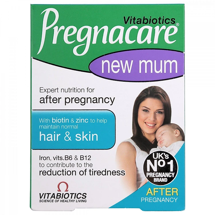 Pregnacare New Mum là một sản phẩm độc đáo của Vitabiotics, bao gồm các vitamin và khoáng chất giúp mẹ phục hồi sức khỏe sau sinh, hỗ trợ cải thiện tình trạng tóc rụng, giúp da, tóc đẹp hơn. Sản phẩm dùng được cho phụ nữ đang cho con bú và không gây tác dụng phụ.