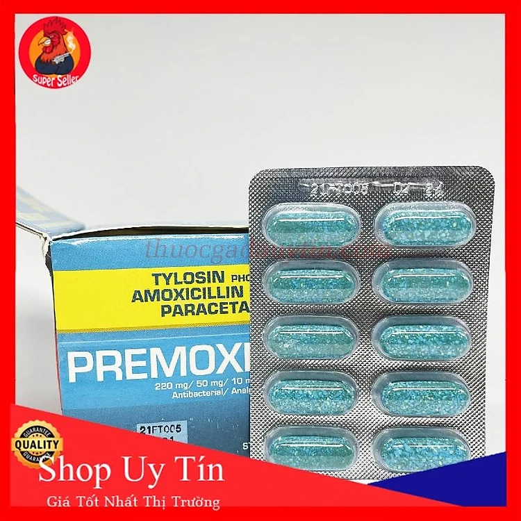 - Đặc biệt khác với 500 Premoxil có thêm thành phần Paracetamol giúp gà giảm đau , hạ sốt.