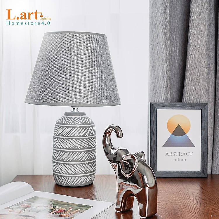Đèn ngủ gốm vintage màu xám trắng họa tiết lá DBG009
