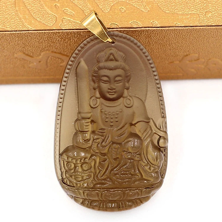 Mặt Phật Văn Thù Bồ Tát đá Obsidian 5cm MBNN3 - phật bản mệnh tuổi Mão - Mặt size lớn