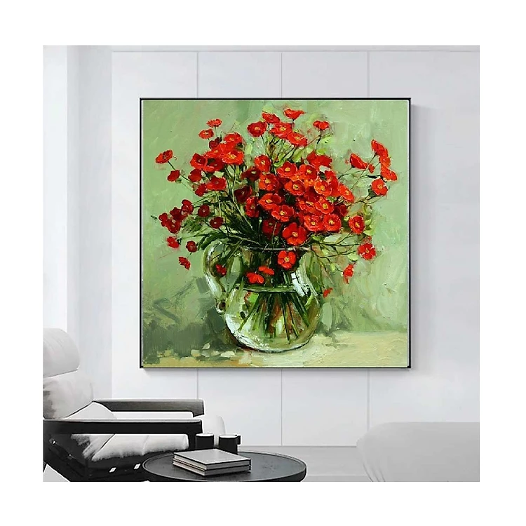 Tranh treo tường lọ hoa xin xắn, Hoa đỏ theo phong cách sơn dầu PVP-DC1V-01