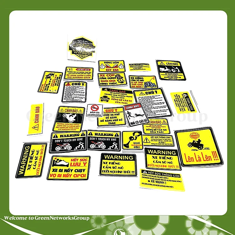 Bộ 5 Tem Cảnh Báo Dán Xe Máy, Sticker Dán Nón Bảo Hiểm Chống Thấm Nước Green Networks Group
