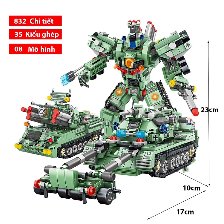 Đồ chơi lắp ráp cho bé trai Robot và Xe Tank 8 trong 1 với 832 chi tiết có thể ráp thành 25 kiểu khác nhau Mã 633029